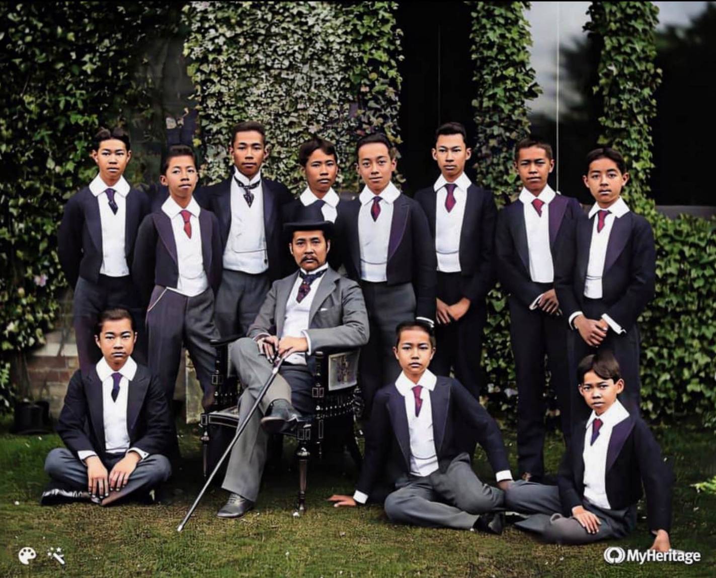 ภาพนี้ ร.5 ทรงฉายพระรูปร่วมกับพระราชโอรส 11 พระองค์ เมื่อวันที่ 7 สิงหาคม พ.ศ.2440 ณ พระตำหนักทับโลคอร์ต (Taplow Court) เมืองเมเด็นเฮด (Maiden Head) ประเทศอังกฤษ พระราชโอรส 11 พระองค์ มีดังนี้